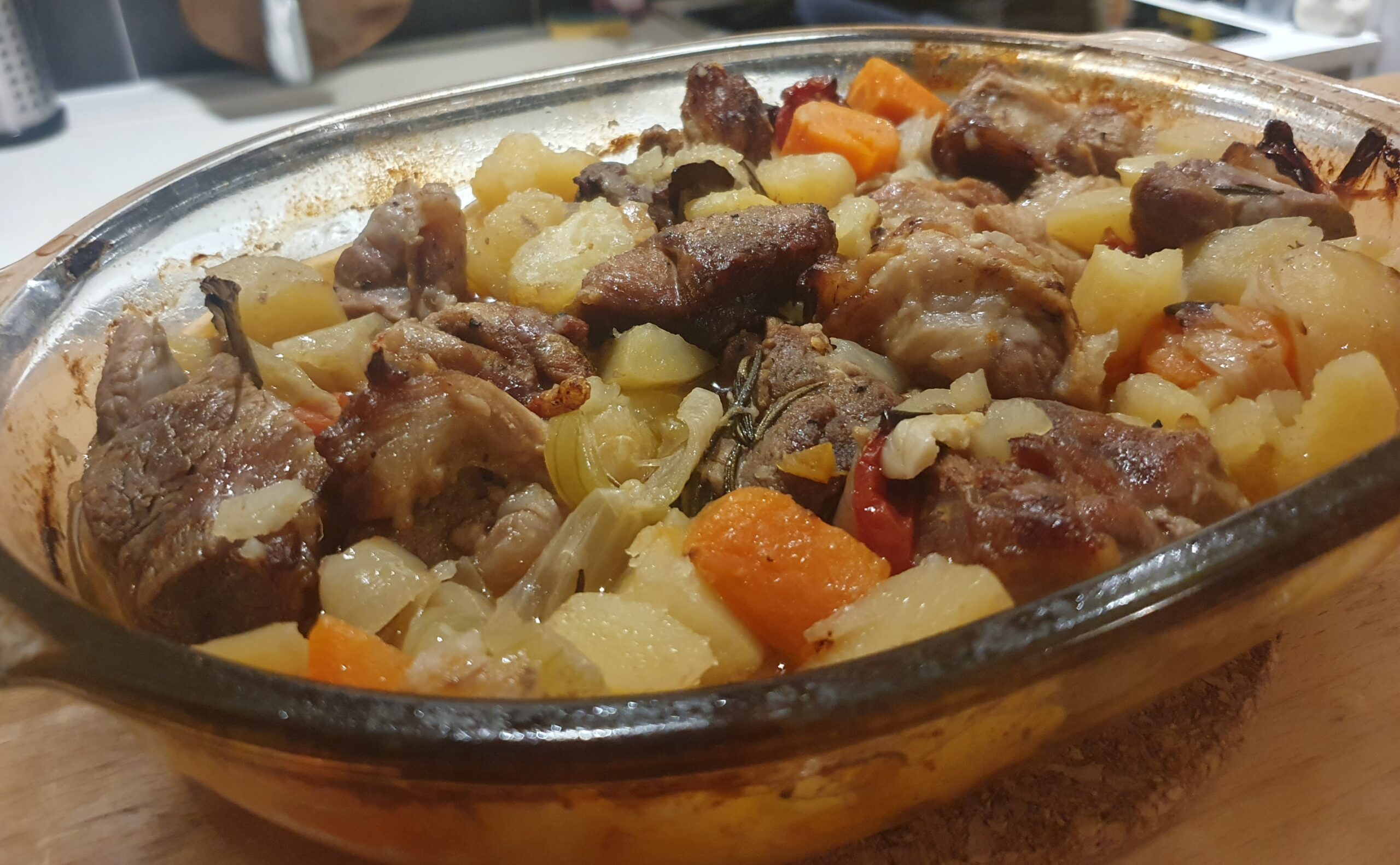 L’agneau « sous cloche » (ispod peke) doit son nom à sa méthode de cuisson. Elle se fait dans un grand plat rond en terre cuite recouvert d’une cloche en métal qu’on recouvre de braise. Ici, nous allons la faire au four.